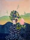 Tending the Bloom - 12" x 12" - mixed media on panel