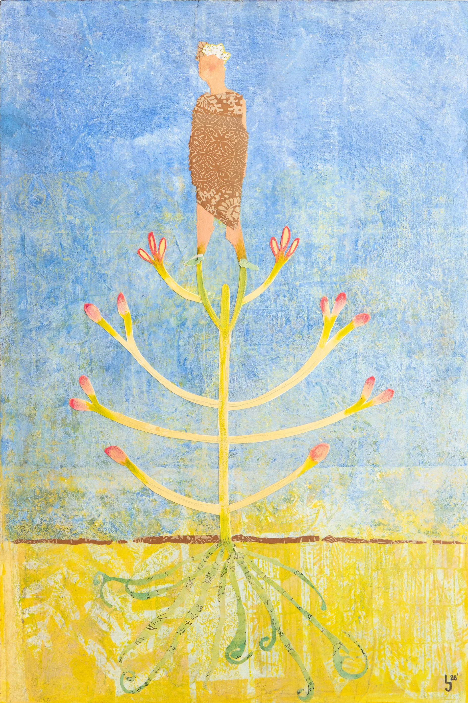 As a full-time artist, the trinity of rock, paper, and wood has defined my journey. Starting with colored papers, I evolved to crafting pigmented pieces and now elevate my trademark style with Japanese paper, employing batik resist, mono printing, textiles and sewn areas of paper for refined finishes.